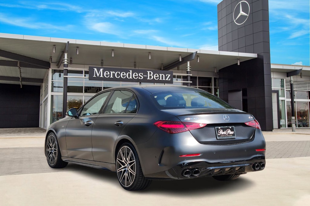 Certified. 2024 Mercedes-Benz C-Class C 43 AMG® 4D Sedan 4MATIC® MANUFAKTUR Graphite Gray Magno 4MATIC® I4 Clean CARFAX. AMG® Night Package, Driver Assistance Package, Pinnacle Trim Package, 4MATIC®, 11.9 Center Touchscreen Display, 4-Wheel Disc Brakes, 5 Speakers, ABS brakes, Active Lane Change Assist, Active Speed Limit Assist, Adaptive suspension, Air Conditioning, Alloy wheels, AM/FM radio, AMG® Night Package, AMG® Night Package Components, Apple CarPlay®/Android Auto®, Augmented Video for Navigation, Auto High-beam Headlights, Auto tilt-away steering wheel, Auto-dimming door mirrors, Auto-dimming Rear-View mirror, Automatic temperature control, Brake assist, Bumpers: body-color, Burmester® 3D Surround Sound System, Compass, Delay-off headlights, DIGITAL LIGHT w/Projections, DISTRONIC PLUS® w/Steering Assist & Stop & Go Assist, Driver Assistance Package, Driver Assistance Package Plus, Driver door bin, Driver vanity mirror, Dual front impact airbags, Dual front side impact airbags, Electronic Stability Control, Emergency communication system: Mercedes-Benz Emergency Call Service, Enhanced Ambient Lighting, Exterior Parking Camera Rear, Four wheel independent suspension, Front anti-roll bar, Front Bucket Seats, Front Center Armrest, Front dual zone A/C, Front reading lights, Fully automatic headlights, Garage door transmitter: HomeLink, Genuine wood dashboard insert, Head restraints memory, Head-Up Display w/AMG® Specific Content, Heated door mirrors, Heated front seats, Illuminated entry, Individualization Package, Knee airbag, Leather steering wheel, Low tire pressure warning, MB Navigation, MB-Tex/Microfiber Upholstery, Memory seat, Occupant sensing airbag, Outside temperature display, Overhead airbag, Overhead console, Panic alarm, Panorama Roof, Passenger door bin, Passenger vanity mirror, Pinnacle Trim Package, Power adjustable front head restraints, Power door mirrors, Power driver seat, Power Heated Front Seats w/Memory, Power moonroof, Power passenger seat, Power steering, Power windows, PRE-SAFE® Impulse Side, PRE-SAFE® PLUS, Premium audio system: MBUX, Radio data system, Radio: FrontBass 5-Speaker Audio System, Rain sensing wipers, Rear anti-roll bar, Rear fog lights, Rear reading lights, Rear seat center armrest, Rear window defroster, Remote keyless entry, Route-Based Speed Adaptation, Security system, Speed control, Speed-sensing steering, Split folding rear seat, Spoiler, Sport steering wheel, Steering wheel memory, Steering wheel mounted audio controls, Tachometer, Telescoping steering wheel, Tilt steering wheel, Traction control, Trip computer, Turn signal indicator mirrors, Variably intermittent wipers, Weather band radio, Wheels: 18 x 8.0J AMG® 10-Spoke.CARFAX One-Owner. 20/28 City/Highway MPG