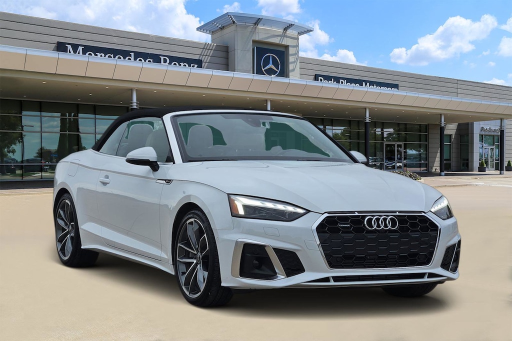 Odometer is 5494 miles below market average! 2024 Audi A5 45 S line Prestige 2D Convertible quattro Glacier White Metallic quattro 2.0L 4-Cylinder TFSI Clean CARFAX. Premium Sound, Head Up Display, Surround View, Parking Assist, quattro, Black w/Leather Seating Surfaces, 19 Wheel Package, Alarm System w/Motion Sensors, Animation for Headlights & Taillights, Audi Advanced Key, Audi Connect NAV & PLUS, Audi Laser Light w/Headlight Washers, Audi Side Assist w/Pre Sense Rear, Audi Virtual Cockpit Plus, Auto-Dimming Exterior Mirrors w/Memory, Bang & Olufsen Sound System w/3D Sound, Convenience Package, Driver Seat Memory, Head-Up Display, Leatherette Covered Center Console & Door Armrests, LED Interior Lighting Plus Package, MMI Navigation Plus, Navigation Package, Neck-Level Heating System, Park Assist, Power Folding Exterior Mirrors, Prestige, SiriusXM w/360L, Top View Camera System, Traffic Sign Recognition, Ventilated Front Seats, Warm Weather Package, Wheels: 19 5-Spoke-Cavo Design Bi-Color Finish, Wireless Phone Charging Pad.Recent Arrival! CARFAX One-Owner. 24/33 City/Highway MPG